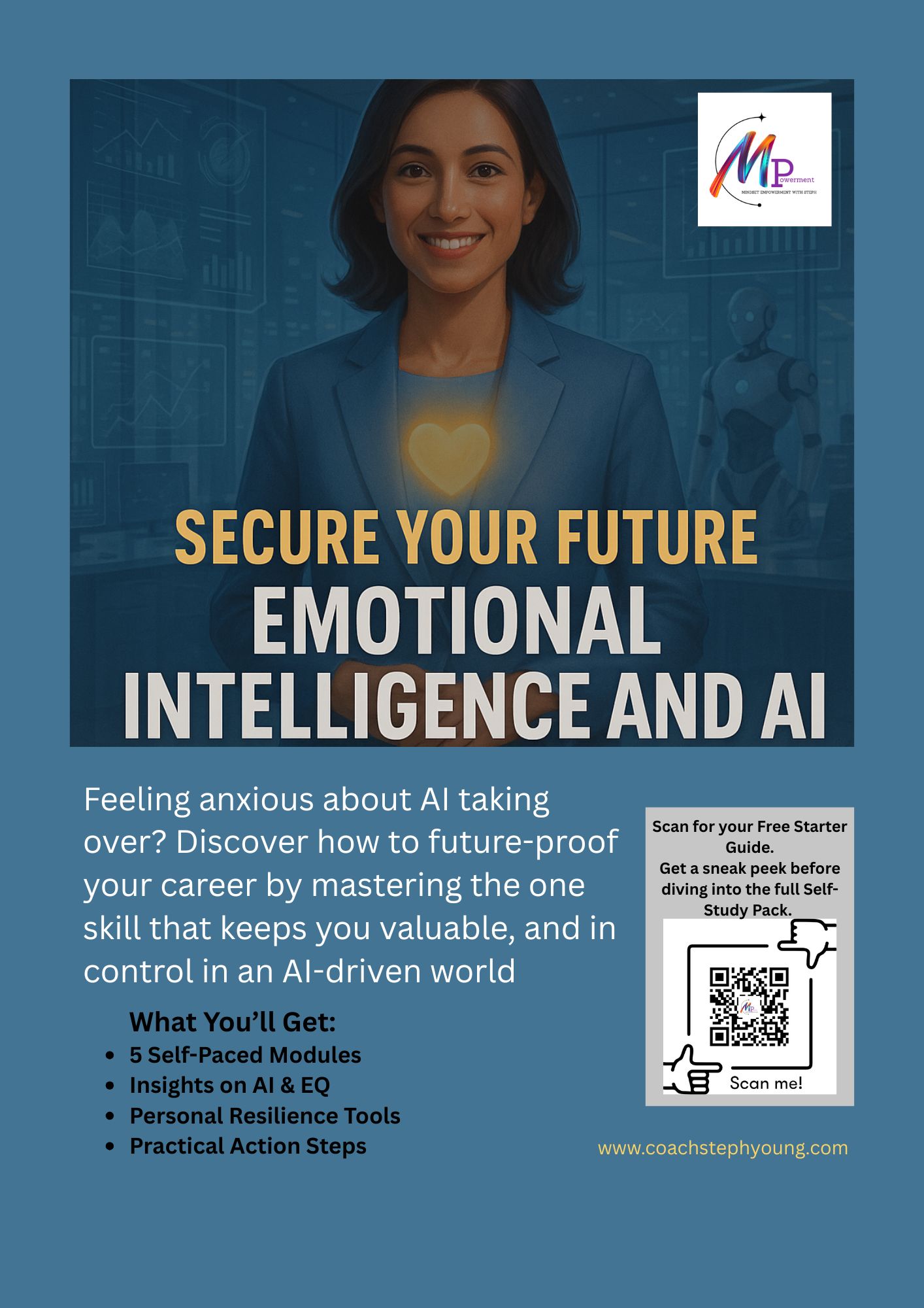 Grab my free guide The Human Edge, Emotional Intelligence and AI: Secure Your Future or scan the QR Code above.